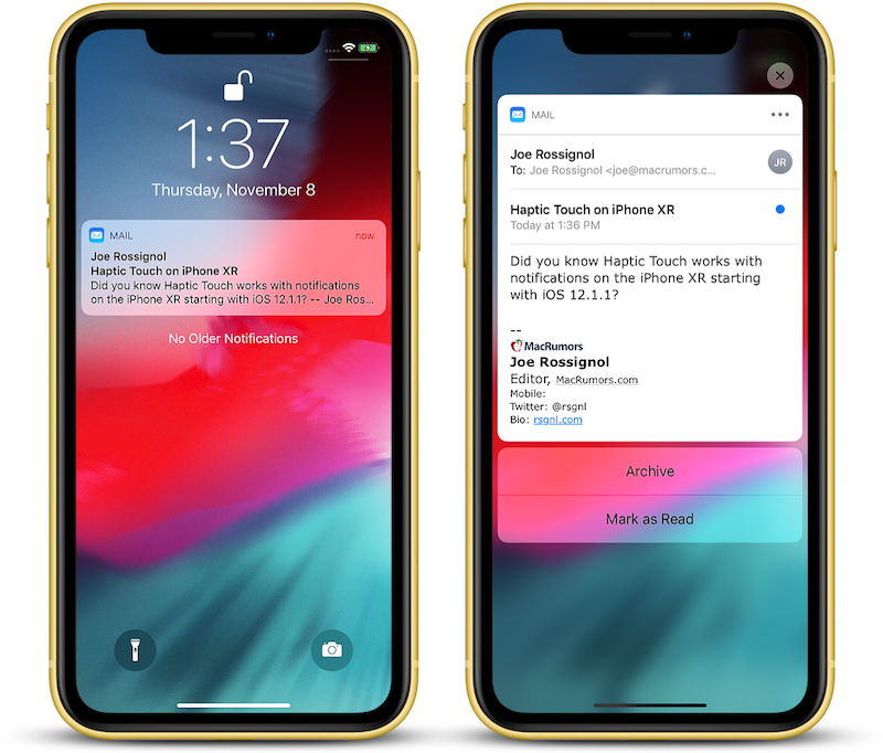 Haptic Touch Will Work With Notifications On Iphone Xr In Ios 12 1 1 Macrumors Forums